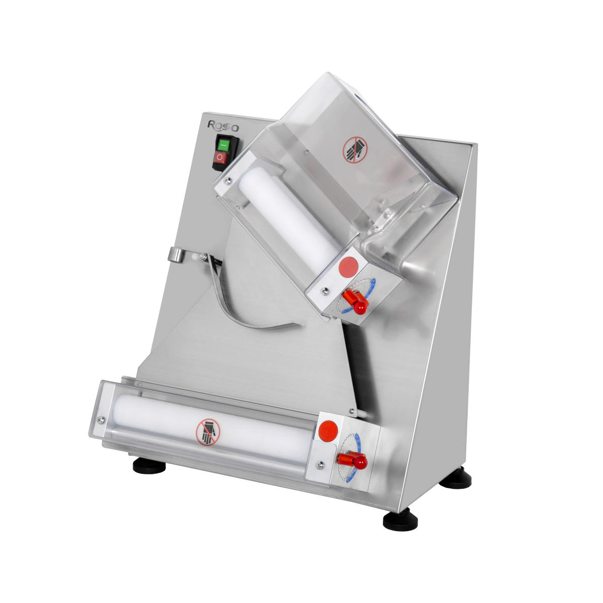 Машина тестораскаточная Rosso DR-40 используется для раскатки теста и формирования тестовых заготовок, используемых для последующего приготовления пиццы, лепёшек и других хлебобулочных изделий. Имеет 2 валка, расположенных под углом. Корпус изготовлен из нержавеющей стали, валки – из пищевого полимера.