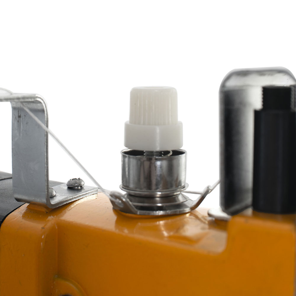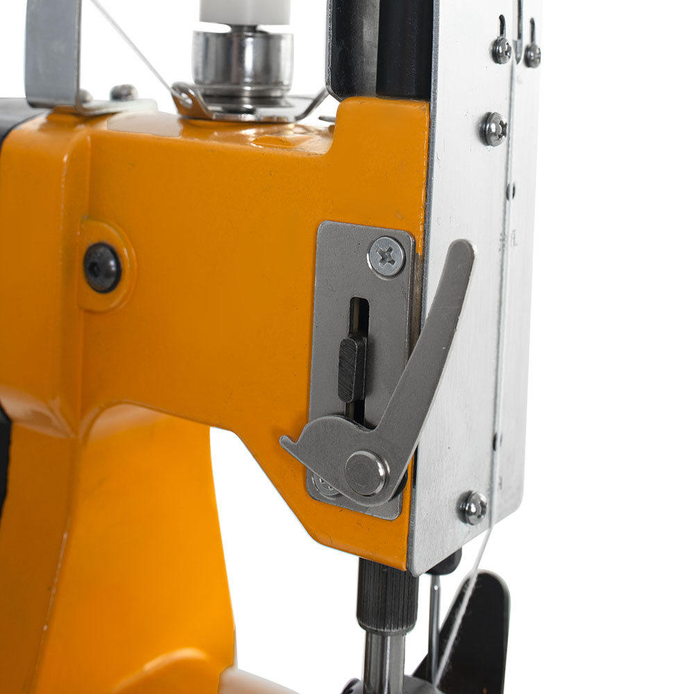 Мешкозашивочная машина Foodatlas GK9-350 используется на предприятиях общественного питания и торговли для прошивания полипропиленовых, полиэтиленовых, джутовых, тканевых и бумажных мешков. Модель оснащена системой обрезки нити, эргономичной рукоятью с удобным расположением кнопки запуска, имеет дополнительные крепления для подвеса, при помощи которых машинку можно подвесить. Также модель оборудована внешним переносным элементом питания (аккумулятором), который соединен с основным корпусом при помощи гибкого кабеля, аккумулятор крепится к поясному ремню оператора, что снижает нагрузку на его руку. Копрус выполнен из стали и покрыт порошковой краской.