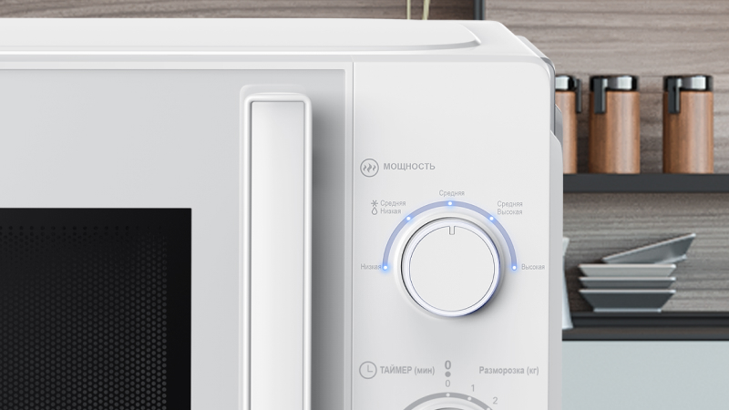 5 уровней мощности: От мощности зависит скорость и возможности готовки. Пятиуровневая регулировка — то, что нужно, если вы хотите в считанные минуты разогревать самые различные продукты и блюда.