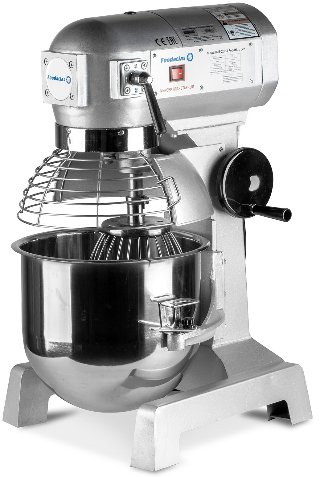 Миксер планетарный Foodatlas B-20BA Eco применяется на предприятиях общественного питания и торговли для приготовления кремов, теста и соусов.