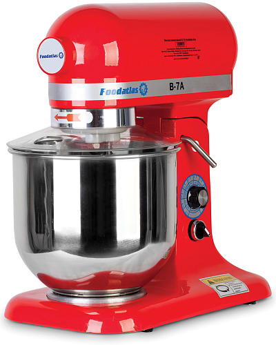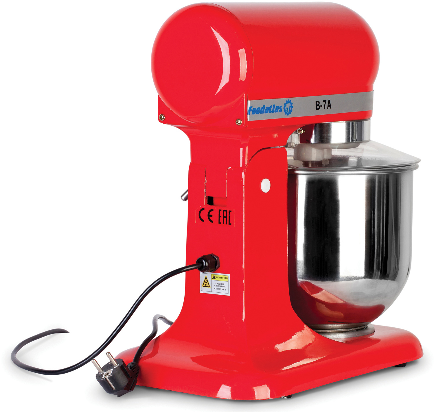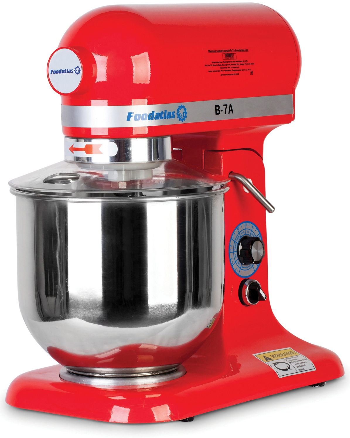 Миксер планетарный Foodatlas B-7A Eco, красный применяется на предприятиях общественного питания и торговли для приготовления кремов, теста и соусов.
