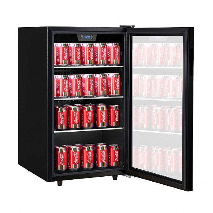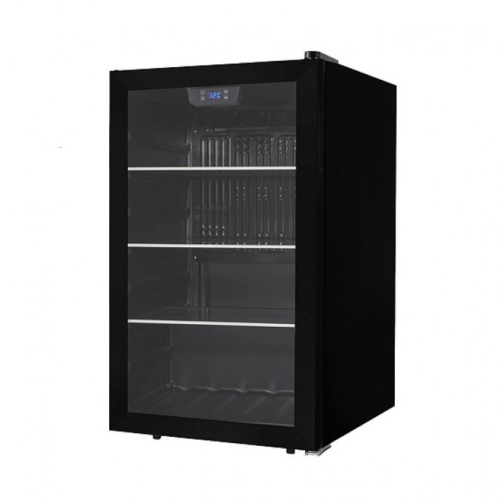 Модель оснащена 3 съемными полками, механическим управлением и цифровым дисплеем. Корпус выполнен из окрашенного металла, дверь - из двойного тонированного стеклопакета с защитой от УФ-излучений, полки - из стекла.