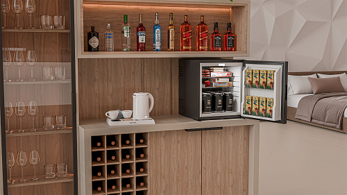 Минибар MEYVEL MMA-30B — это практичное решение для тех, кто хочет хранить напитки и продукты в удобном и компактном формате. Его можно расположить как отдельностощее устройство в гостиничном номере, кабинете или спальне или «спрятать» в мебели, сэкономив место. Второй вариант особенно удобен для небольших комнат.