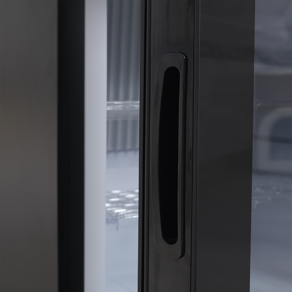 Внутреннее пространство продумано до мелочей. Две полки регулируется по высоте под размер бутылок, упаковок и других продуктов. Встроенная подсветка делает использование удобным даже в полной темноте, помогая быстро найти нужный напиток.
