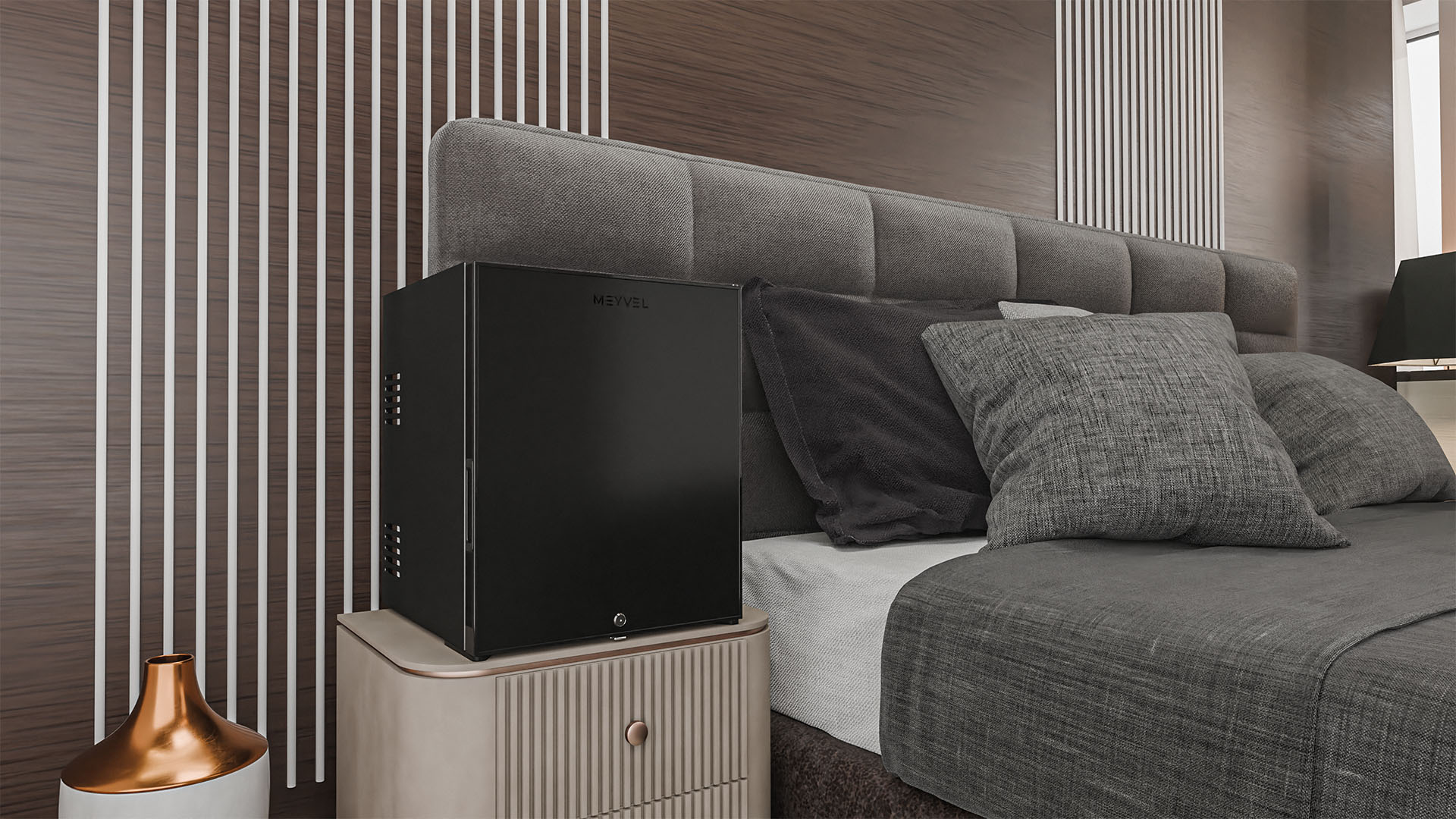 Основа охлаждающей системы мини-бара — гибридная технология, обеспечивающая равномерное охлаждение и низкое энергопотребление. Отсутствие движущихся частей делает работу устройства совершенно бесшумной, что особенно ценно для гостиничных номеров, спален и рабочих кабинетов, где важна тишина.