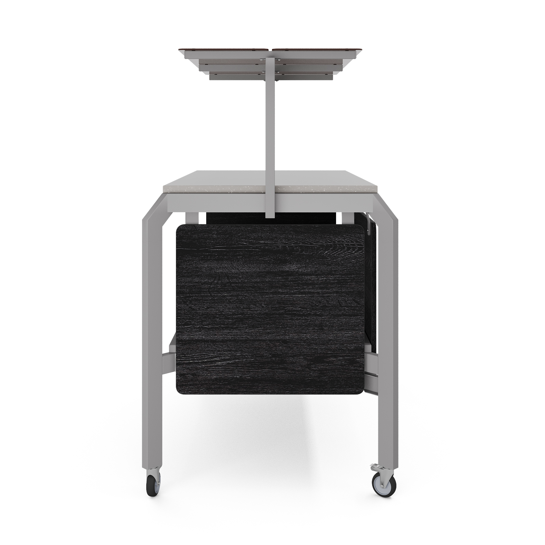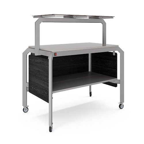Модуль мобильный нейтральный КОБОР AN120 aluminum/glazed/sky предназначен для демонстрации, кратковременного хранения и раздачи готовых блюд: салатов, закусок, кондитерских изделий и напитков, и чистых тарелок в составе линий раздачи или самообслуживания в кафе, ресторанах и фудкортах, на предприятиях общественного питания и торговли. Модель оснащена полкой-надстройкой со стеклом и поворотными колесами для мобильности, 2 колеса оснащены тормозом. Сварной каркас выполнен из профиля сечением 60х30, покрытого порошковой краской, внешний корпус - из ЛДСП, столешница - из камня.