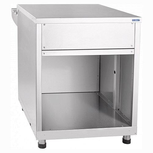 Внизу модуля расположен шкаф, в котором можно хранить кухонный инвентарь. В комплекте с модулем поставляются направляющие для подносов. Ножки регулируются по высоте.