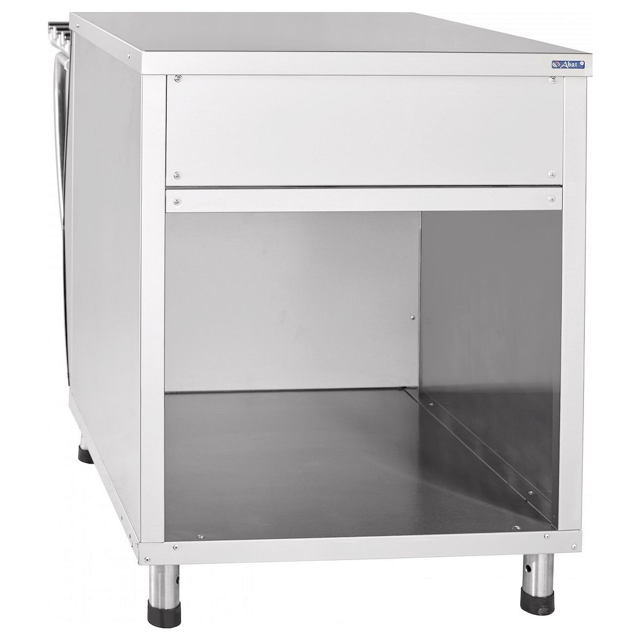 Внизу модуля нейтрального Abat МН-70Т расположен шкаф, в котором можно хранить кухонный инвентарь. В комплекте с модулем поставляются направляющие для подносов. Ножки регулируются по высоте.