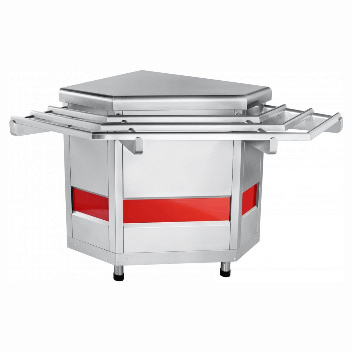 Модуль поворотный Abat (Чувашторгтехника) МП-90КМ является нейтральным столом и в то же время позволяет повернуть линию раздачи на 90 градусов, не прерывая линию направляющих для подносов.
