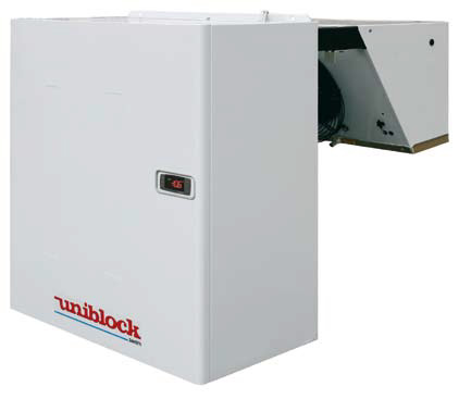 Специальная конструкция такого моноблока позволяет устанавливать его на любой из стен сборной холодильной камеры с толщиной не более 120 мм. Он монтируется просто подвешиванием в двух прорезях вертикальной панели стены камеры.