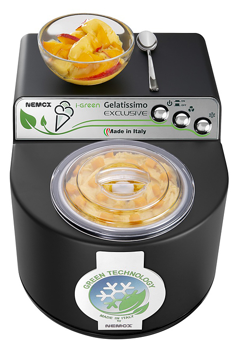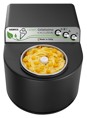 Мороженица Nemox I-Green GELATISSIMO Exclusive Mat Black используется в частных домах и квартирах для приготовления мороженого, сорбета, гранита и других холодных десертов, а также для использования в качестве ведерка для льда или охладителя бутылок с напитками.