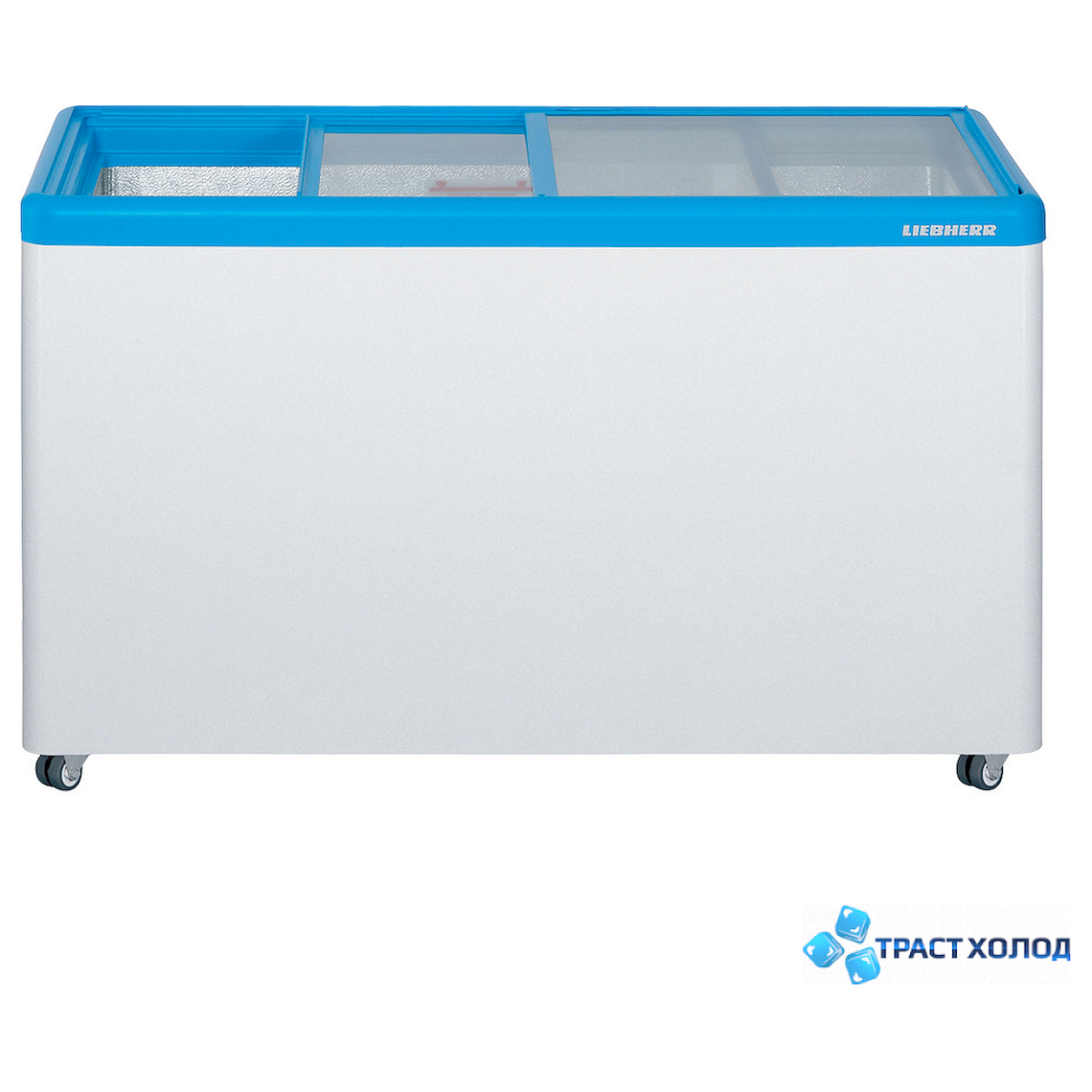 Самый длинный в своей линейке, объёмом 521 литр, морозильный ларь с прямой стеклянной крышкой, Liebherr GTE 5002, предназначен для мороженого и других мороженых продуктов. В нем мощная система охлаждения, поддерживающая температурный режим от –10°С до –24°С даже в сильную жару, равномерное распределение температуры и небольшое энергопотребление – всего 2,5 кВтч/сутки. Единая ABS рама обеспечивает максимальную устойчивость, безопасные изогнутые по радиусу внешние углы придают устройству современный и стильный вид, а благодаря эффективной изоляции ларь имеет небольшие для своего объёма габариты.