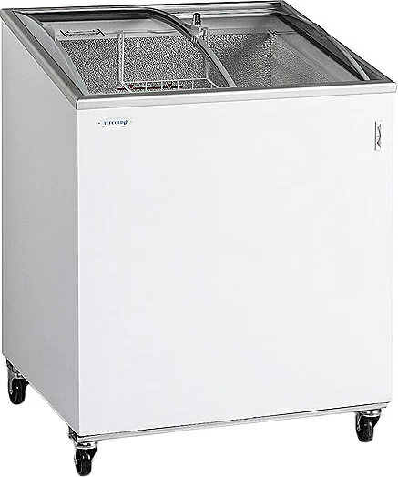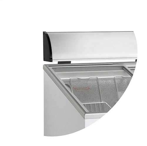 Крышка с гнутым стеклом обеспечивает хороший обзор товара для клиента. Модель оборудована термометром и замком, что особенно важно для уличной торговли и небольших магазинов. Данное изделие имеет CE-маркировку, проверено временем и удовлетворяет международным требованиям и стандартам.