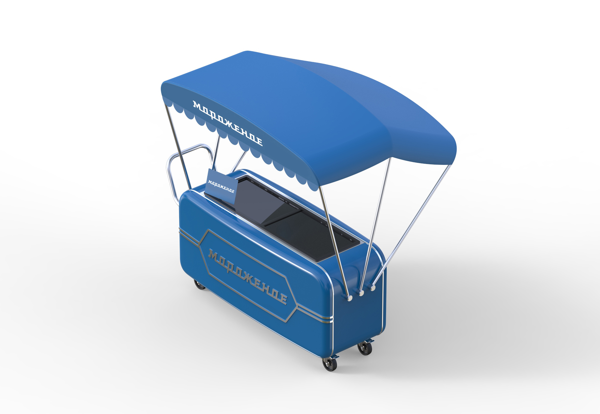Его неосоветский леттеринг, округлая форма морозильной камеры и приглушенное цветовое решение разбудят воспоминания о детстве, когда с большим удовольствием покупали по два-три мороженых за раз. Не удивляйтесь, если к вам будут выстраиваться большие очереди, даже при наличии рядом конкурентов.