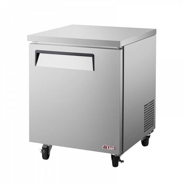 Морозильный стол Turbo Air EUF-28 устанавливается на предприятиях общественного питания и торговли для заморозки и длительного хранения продуктов, полуфабрикатов и мороженого. Модель оснащена LED-подсветкой, полкой, колесиками со стопорами, магнитными уплотнителями и дверью с замком. Петли двери выполнены из нержавеющей стали.