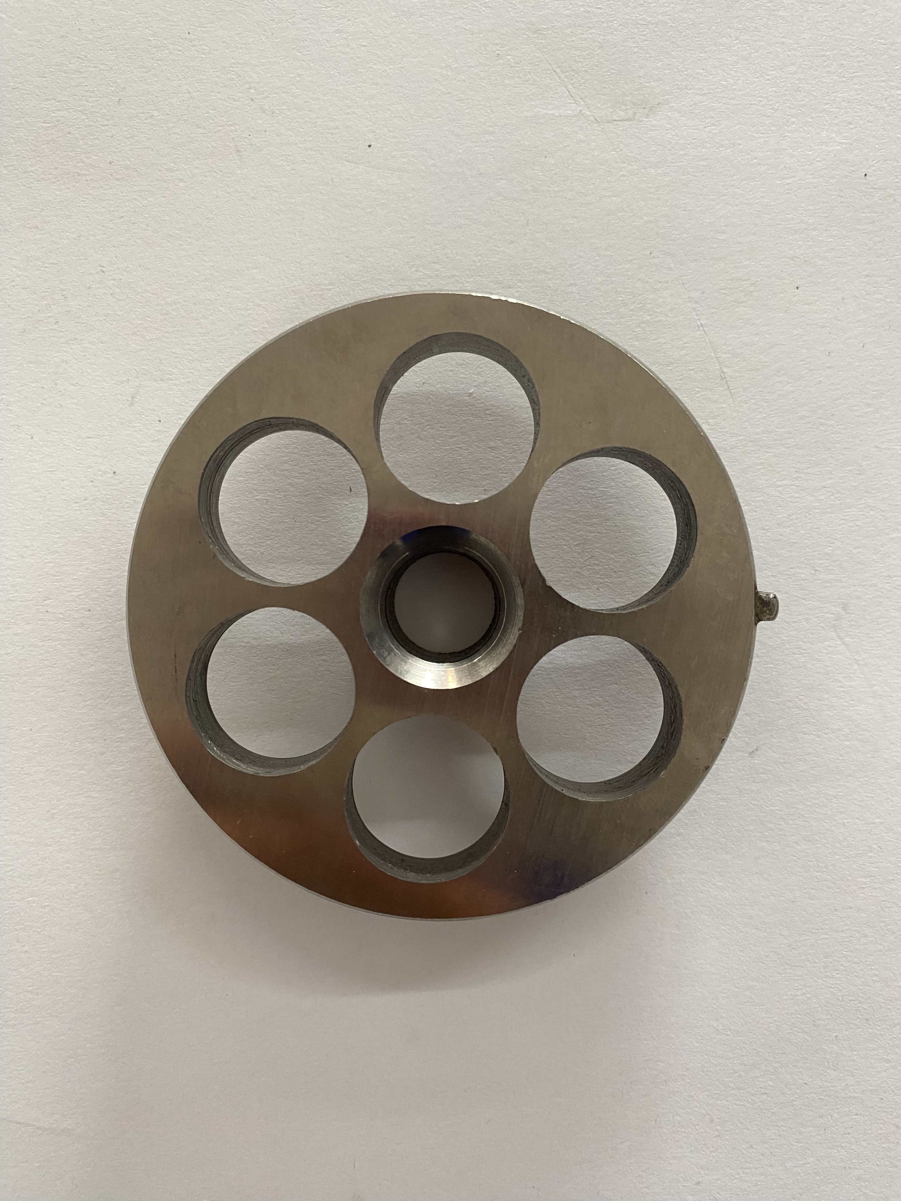 ВАЖНО! Температура мяса не должна быть ниже -4°С Мощность 1,5 кВт; Мясорубочная часть из высококачественной нержавеющей стали # 201; Нож и решетки с отверстиями 6мм и 8мм из нержавеющей стали в комплекте; Алюминиевый корпус и основание; Купатница для изготовления колбасок в комплекте; Загрузочный лоток и толкатель в комплекте. Дополнительно возможно приобрести решетки диметром 3мм, 12мм,18мм и подрезную.