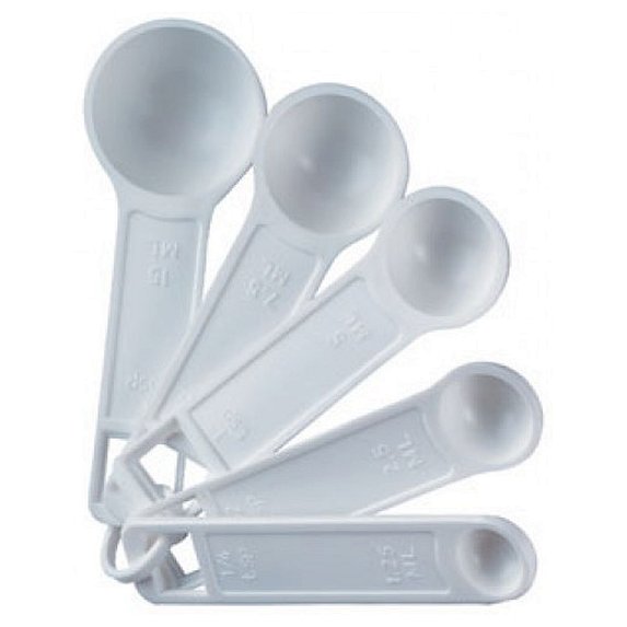 Набор мерных ложек 5 шт. белый пластик (100+50+15+ 5+1мл) Linden /1/