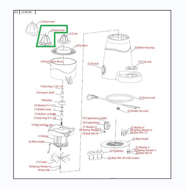 Насадка (конус) внутренняя (#2-inner cone) для соковыжималки т.м. EKSI серии J, мод. J-50