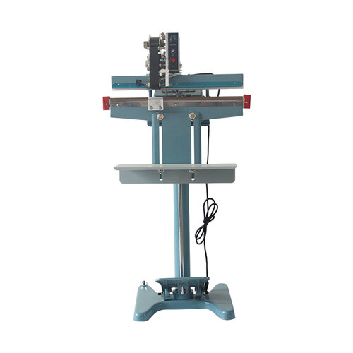 Ножной усиленный запайщик Hualian Machinery PFS-350C с датером представляет серию напольных запайщиков импульсного типа для промышленной эксплуатации в условиях повышенных рабочих нагрузок. Отличительные особенности серии: надежная металлическая конструкция, усиленный трансформатор, мощный нагревательный элемент.