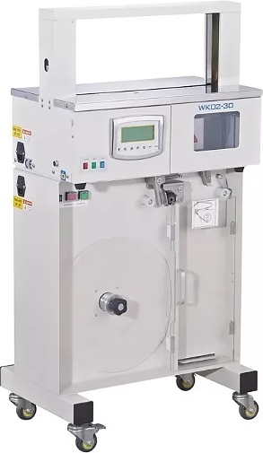 Обандероливающая машина Hualian Machinery WK02-30B это аппарат на базе аппарата WK02-30 но со специальной подставкой для работы с лентой большей намотки. Для модели WK 02-30B используется лента шириной 30 мм и намоткой 500 метров, управление от педали либо посредством фотоэлектрического сигнала.