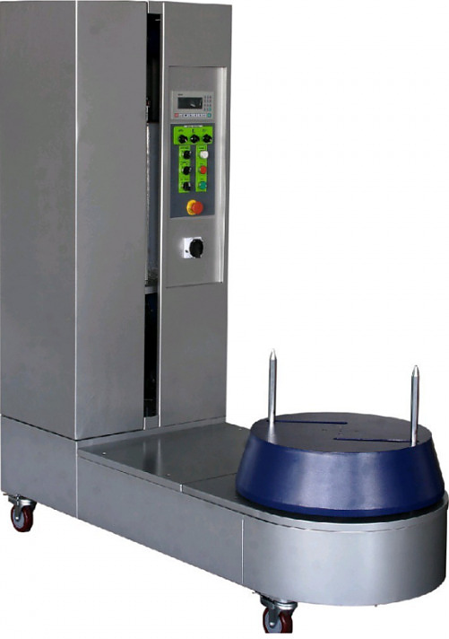 Обмотчик багажа Hualian Machinery XL-01 представляет собой машину для автоматический упаковки багажа в стрейч-пленку под управлением оператора. Фактически по принципу работы он является паллетоупаковщиком узкой направленности. В настоящее время такие аппараты нашли широкое применение в аэропортах, так как пассажиры все больше заботятся о безопасности перевозки своего багажа, экономят время, также надежная упаковка позволяет сохранить внешний вид самих чемоданов и сумок. Обмотчики багажа отличаются мобильностью, компактными размерами, удобным управлением. Предварительное растяжение пленки до 200%. Принцип действия такого упаковщика очень прост: оператор устанавливает багаж на платформе, регулирует вертикальные стержни, чтобы обеспечить упаковку в соответствии с размером багажа, вручную протягивает и закрепляет пленку. Багаж упаковывается в 3-5 слоев пленки. После окончания оператор обрезает пленку и убирает упакованный багаж.