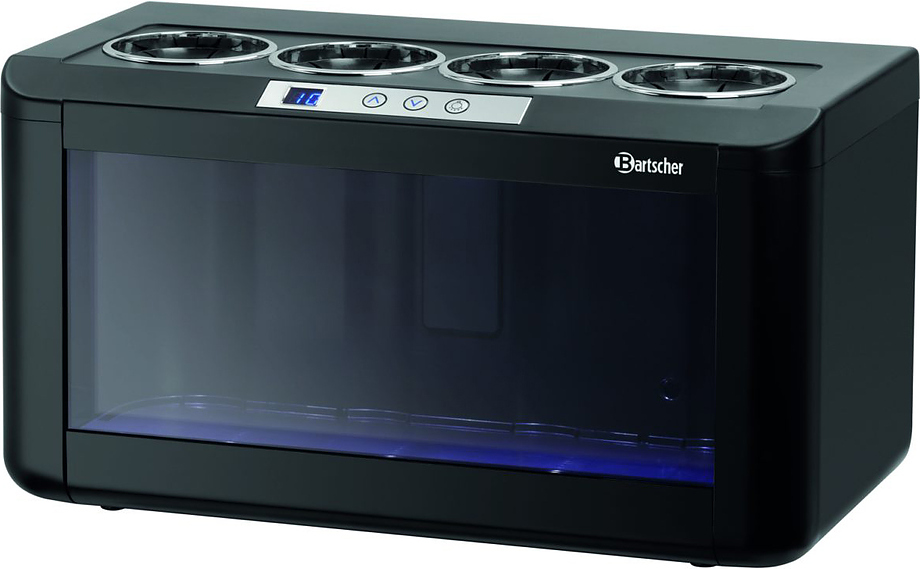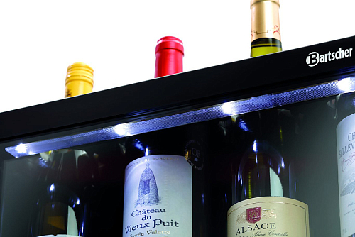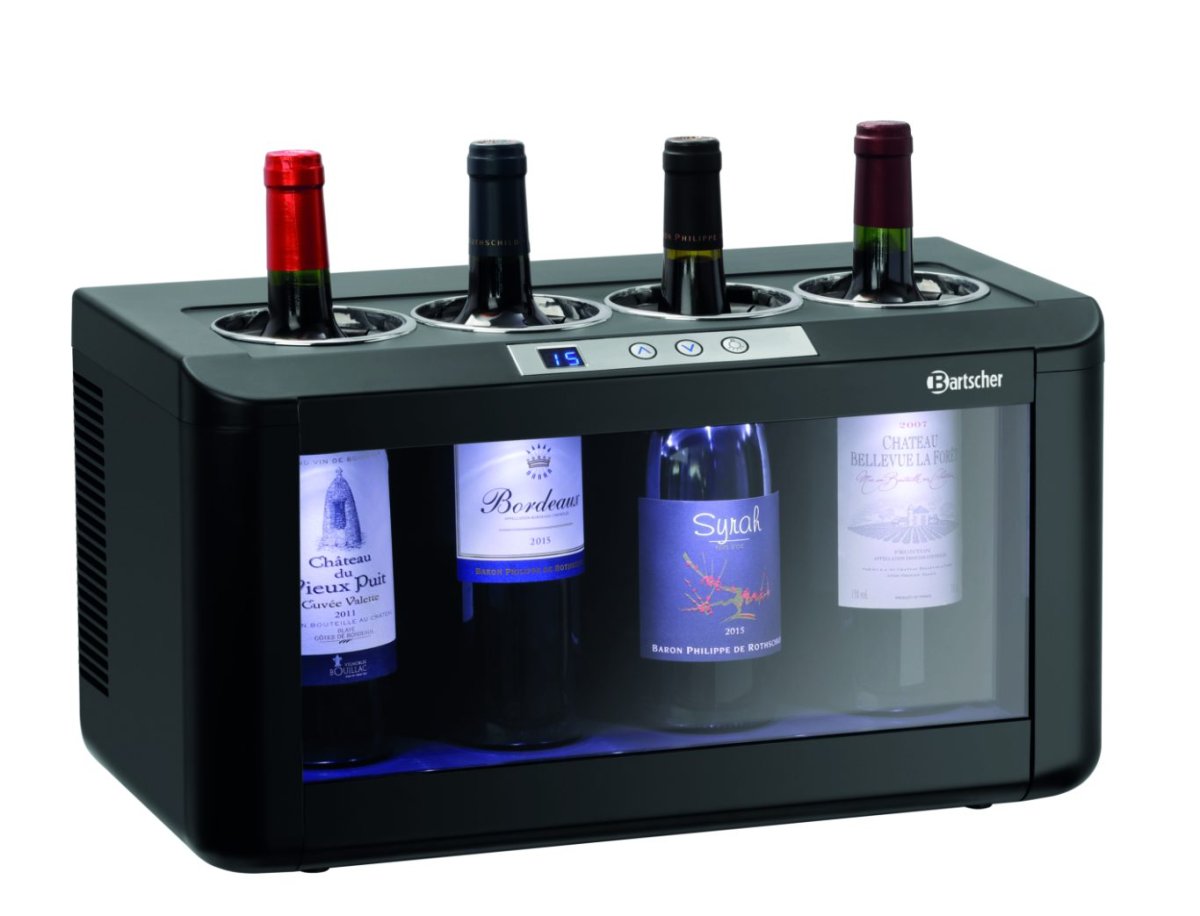 Охладитель для вина BARTSCHER 4FL-100 применяется для быстрого охлаждения и поддержания заданной температуры бутылок красного, розового и белого вина в рамках одного температурного режима в ресторанах, специализированных магазинах, у буфета, барной стойк или стойки для продажи спиртных напитков, в отелях, в частных домах или квартирах. Термостат, вентилятор и включаемая отдельно светодиодная подсветка. Внутренняя поверхность выполнена из пластика.