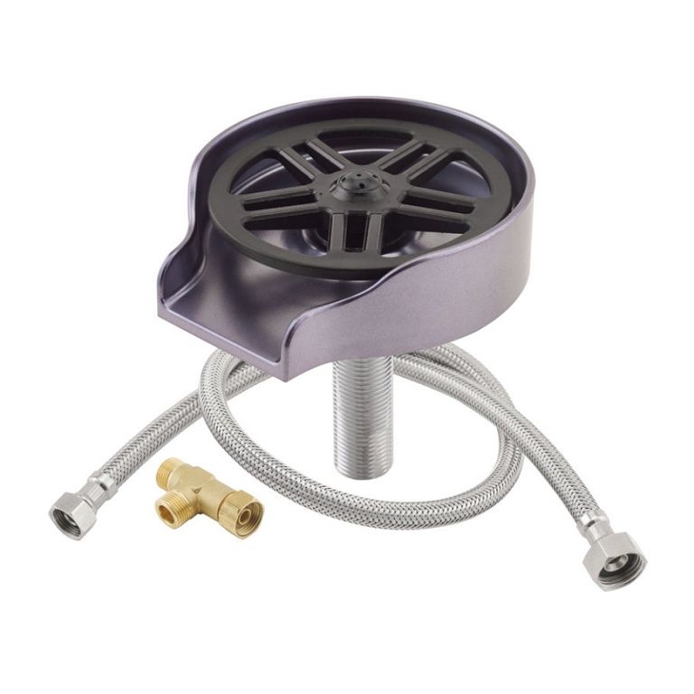 Ополаскиватель для стаканов черный G3/8" Liva, арт. 120.021.238 предназначен для быстрой и легкой очистки стаканов от загрязнений и остатков пищи в моечных цехах на предприятиях общественного питания. Модель имеет круглую форму и крепится на слив мойки. Изделие выполнено из нержавеющей стали, латуни и резины.