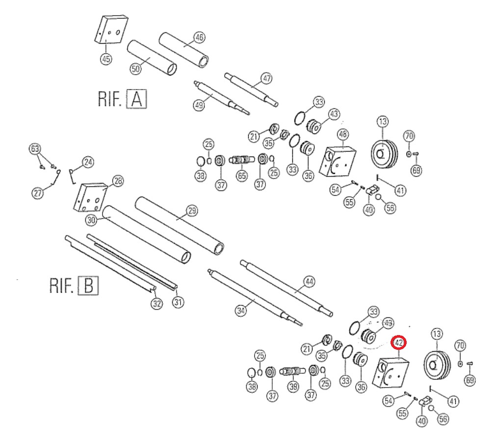 Опора вала правая нижняя DLX30042 (#42) для машины тестораскаточной т.м. WLBake серии DL, мод. DL40P