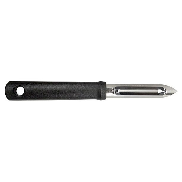 Овощечистка с плавающим лезвием. Удобное лезвие позволяет контролировать толщину среза кожуры с овоща или фрукта. На ручке есть отверстие для подвешивания на крючок.