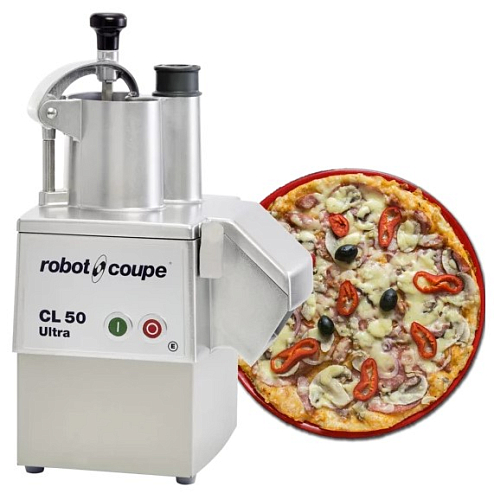Овощерезка Robot Coupe CL 50 Ultra 380 Pizza 2033W используется на предприятиях общественного питания и торговли для нарезки овощей, фруктов, грибов, твердого сыра и колбас и дальнейшего использования их в качестве ингредиентов для приготовления супов, салатов, гарниров и пр. Модель оснащена 2 загрузочными отверстиями: большой D-образной воронкой для нарезки объёмных овощей (вмещает до 10 помидоров) и круглой - для длинных и нежных.