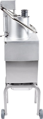 • Боковой выброс продуктов позволяет использовать приёмные ёмкости большого размера и реже забирать нарезанные продукты из ёмкости