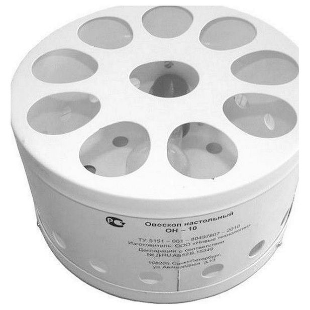 Овоскоп Новые технологии ОН-10 применяется в качестве переносного светового прибора для визуального контроля качества куриных яиц на птицефабриках, лабораториях, предприятиях пищевой промышленности. Количество одновременно проверяемых яиц не более 10 шт. Выполнен из окрашенного металла.