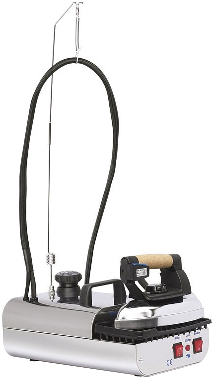 Модель оснащена электропаровым утюгом. Корпус, котел и обтекатель выполнены из нержавеющей стали.