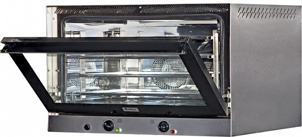 • Ручное управление с удобными рукоятками и оповестительными световыми индикаторами позволяет выставлять температуру, время выпечки, а также управлять процессом подачи пара в камеру печи