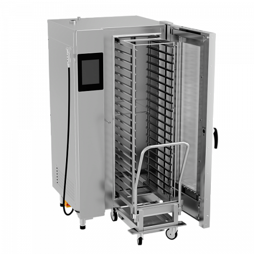 Пароконвектомат бойлерный Gabino Combi-2011b-L с программируемым сенсорным управлением, душем, встроенным трёхточечным щупом, вентилятором предназначен для обжаривания, приготовления на пару, бланширования, запекания и других видов тепловой обработки продуктов на предприятиях общественного питания и торговли.