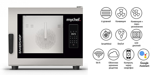• Облачное хранение рецептов и параметров приготовления на базе сайта Mychef с возможностью подключения нескольких печей