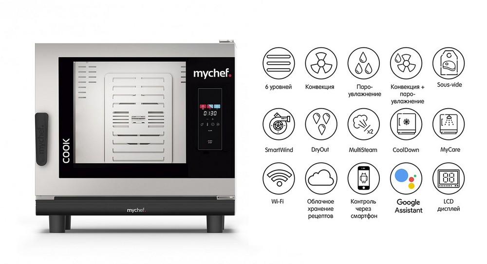 Пароконвектомат Distform MyChef Cook 6 GN 1/1 right opening (CCE6100D) электрический 6 ур. GN1/1, без WiFi, автоматическая мойка