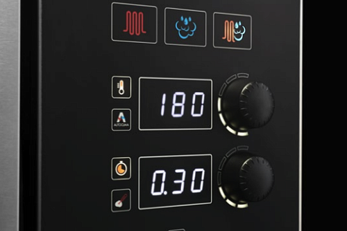 Модель бойлерного типа с разнообразными тепловыми режимами конвекции и пара для всевозможных продуктов, свежеприготовленного теста и тестовых заготовок создает не повторимый вкус и аромат готовых изделий. Пароконвектомат оснащен сенсорным управлением, подсветкой, таймером, USB-портом для скачивания данных HACCP и обновления программного обеспечения + WiFi. Герметичная дверь с регулируемыми петлями и двойным остеклением из закаленного стекла обеспечивает безопасность персонала от воздействия горячего пара.