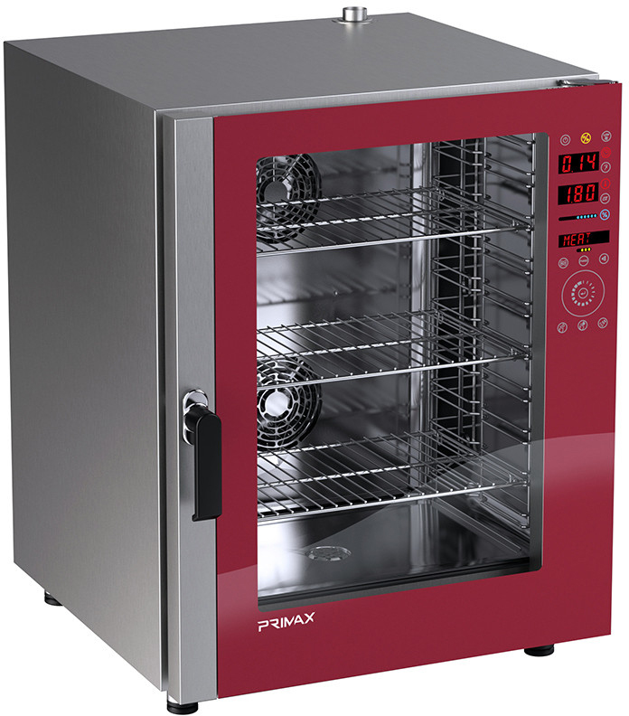 Пароконвектомат Primax PDE-110-HD на 10 уровней используется на средних предприятиях общепита для приготовления различных блюд с помощью жарки, варки, выпечки и других способов.