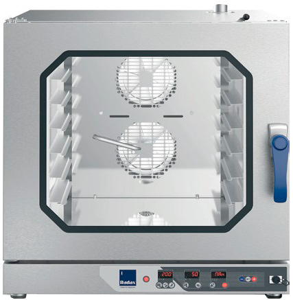 Профессиональная конвекционная духовка/пароконвектомат, оснащенная цифровой панелью управления, подсветкой, герметичной дверью с двойным остеклением из закаленного стекла. Система рециркуляции, необходимая для оптимального распределения воздуха внутри камеры, позволяет значительно снизить потребление энергии на подогрев.