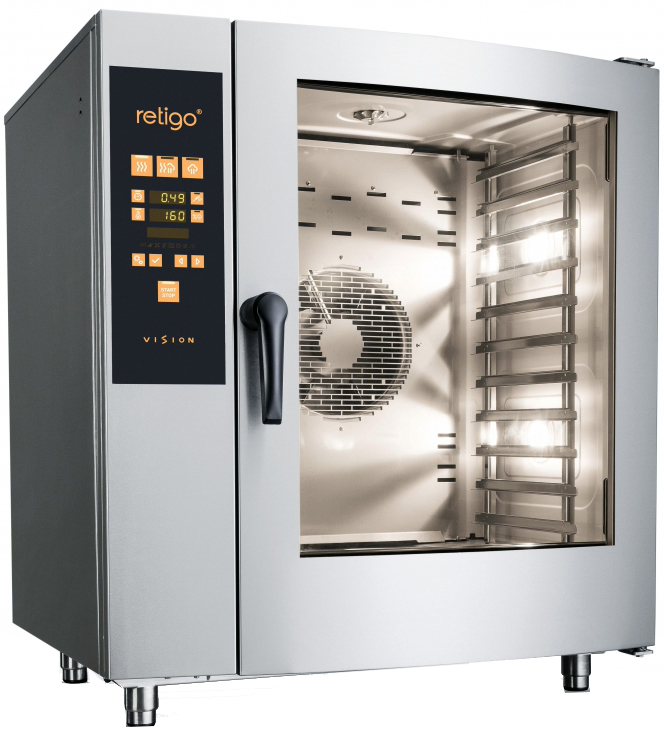 Пароконвектомат RETIGO O1011IC VISION II используется для обжаривания, приготовления на пару, бланширования, запекания и других видов тепловой обработки продуктов на предприятиях общественного питания и торговли.