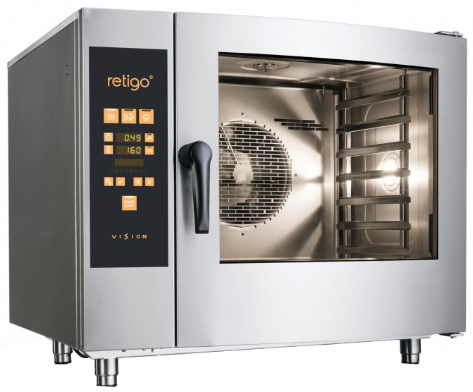 Пароконвектомат RETIGO O611BC VISION II используется для обжаривания, приготовления на пару, бланширования, запекания и других видов тепловой обработки продуктов на фабриках-кухнях, предприятиях общественного питания и торговли.