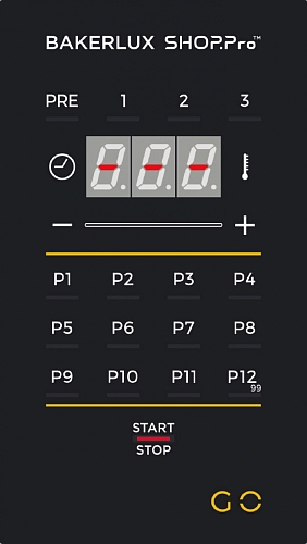Это оборудование вмещает 4 противня размером 460х330 мм, имеет подключение к водопроводу, электронную панель управления GO (99 программ, 12 быстрых программ, 3 этапа выпечки) и температуру нагрева от 30 до 260 °С с двумя режимами работы: конвекция - от 30 до 260 °C и предварительный нагрев до 260 °C.