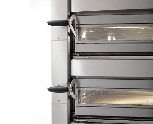 • Дверца с двойным панорамным стеклом и системой открытия и закрытия на сжимающейся пружине.