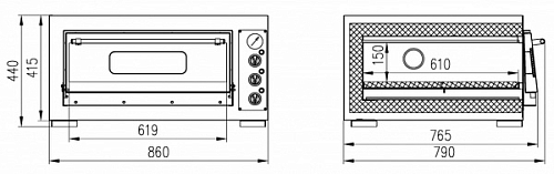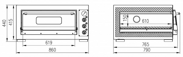 Все электрические компоненты, такие как: таймер времени, термостаты, осветительное оборудование и световые индикаторы, система электропроводки, нагревательные элементы, керамические плиты - производства ведущих европейских компаний. Температура внутри камеры достигает от 50 до 500 °С, что сокращает время выпечки изделий до 2-3 минут для пиццы и блюд типа " лазанья". Дно печи выложено 4 специальными керамическими плитами, которые поддерживают высокую температуру в камере на протяжении длительного времени, удобно достаются и чистятся.