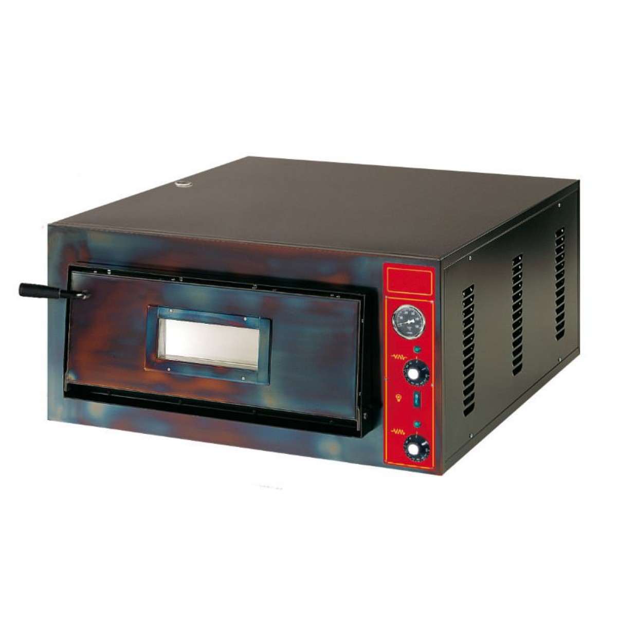 Один уровень, в котором помещается до 6 пицц диаметром 30 см. Время приготовления пиццы в печи – максимум 15 минут. На дне яруса находится подовая поверхность из четырех керамических плиток, которые эффективно поддерживают тепло.