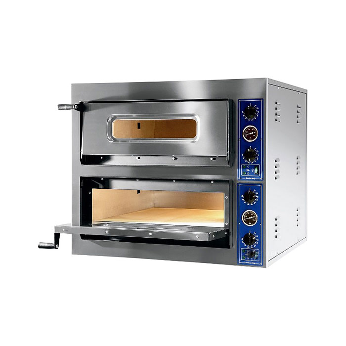 Посредством верхнего и нижнего нагревателя достигается равномерного поддержания высокой температуры внутри камеры, что так необходимо для быстрого приготовления. Посредством встроенного в дверцу окна осуществляется контроль за выпечкой. Данная печь для пиццы характеризуется небольшими габаритами. Корпус и дверца выполнены из нержавеющей стали обеспечивая защиту от коррозии и простоту обслуживания.