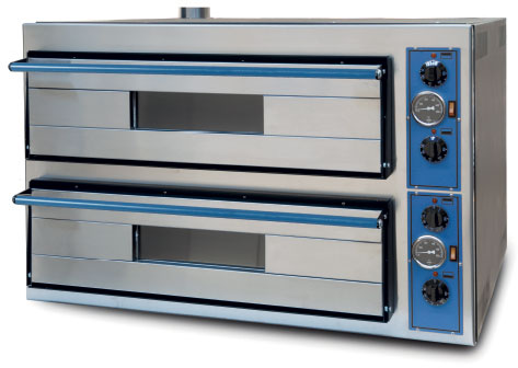 Состоит из двух рабочих камер со встроенной подсветкой, дверцы с термостойким стеклом и панели управления с регулировкой температуры нагрева и времени запекания. Воздух в камерах нагревается с помощью верхних и нижних ТЭНов, обеспечивающих высокую скорость приготовления. Корпус и дверца выполнены из нержавеющей стали, жарочная поверхность - из огнеупорного материала.