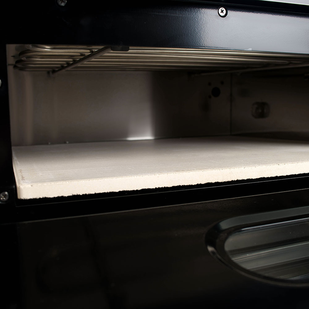 Оборудование оснащено 2 электрическими ТЭНами с возможностью раздельной регуляции температуры. Помимо них, печь имеет каменный под, который значительно улучшает вкус и аромат готового блюда.