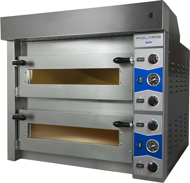 Печь для пиццы GAM POLARIS L66G используется на предприятиях общественного питания, в кондитерских, пекарнях, супер- и гипермаркетах с собственной кухней для выпечки пиццы и хлебобулочных изделий, требующих высокой температуры приготовления. Фасад выполнен из нержавеющей стали, боковины и крыша - из окрашенного листового металла, окна - из стекла, устойчивого к высоким температурам, под - из огнеупорного материала, изоляция - из минеральной ваты высокой плотности.